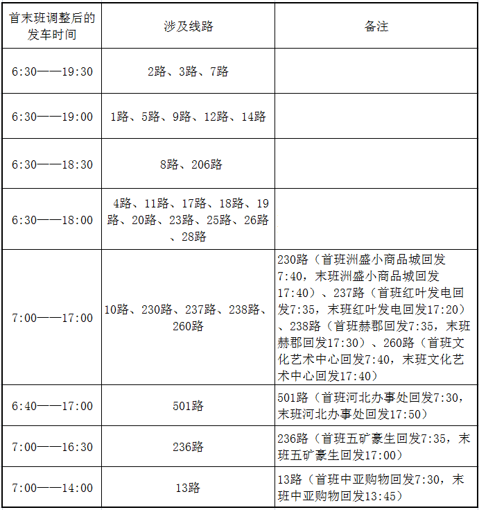 (一)2月15日、16日(三十、初一)首班延后發(fā)車、末班提前收車,具體明細(xì)見下表: